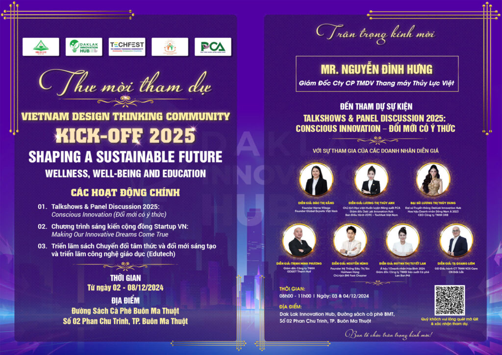 Chương trình do Cộng đồng Tư Duy Thiết Kế VN – Techfest Quốc Gia, Trung Tâm Khởi Nghiệp Sáng Tạo Tỉnh Đắk Lắk – Dak Lak Innovation Hub, Daklak Local Talent, Đường Sách Cà Phê Buôn Ma Thuột, và Học viện Huấn Luyện Năng Suất PCA phối hợp tổ chức, đánh dấu một bước tiến quan trọng trong hành trình xây dựng cộng đồng sáng tạo và đổi mới tại Đắk Lắk.